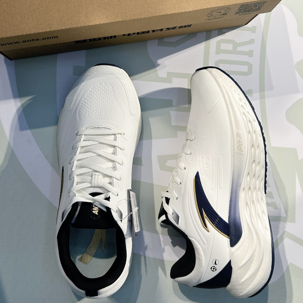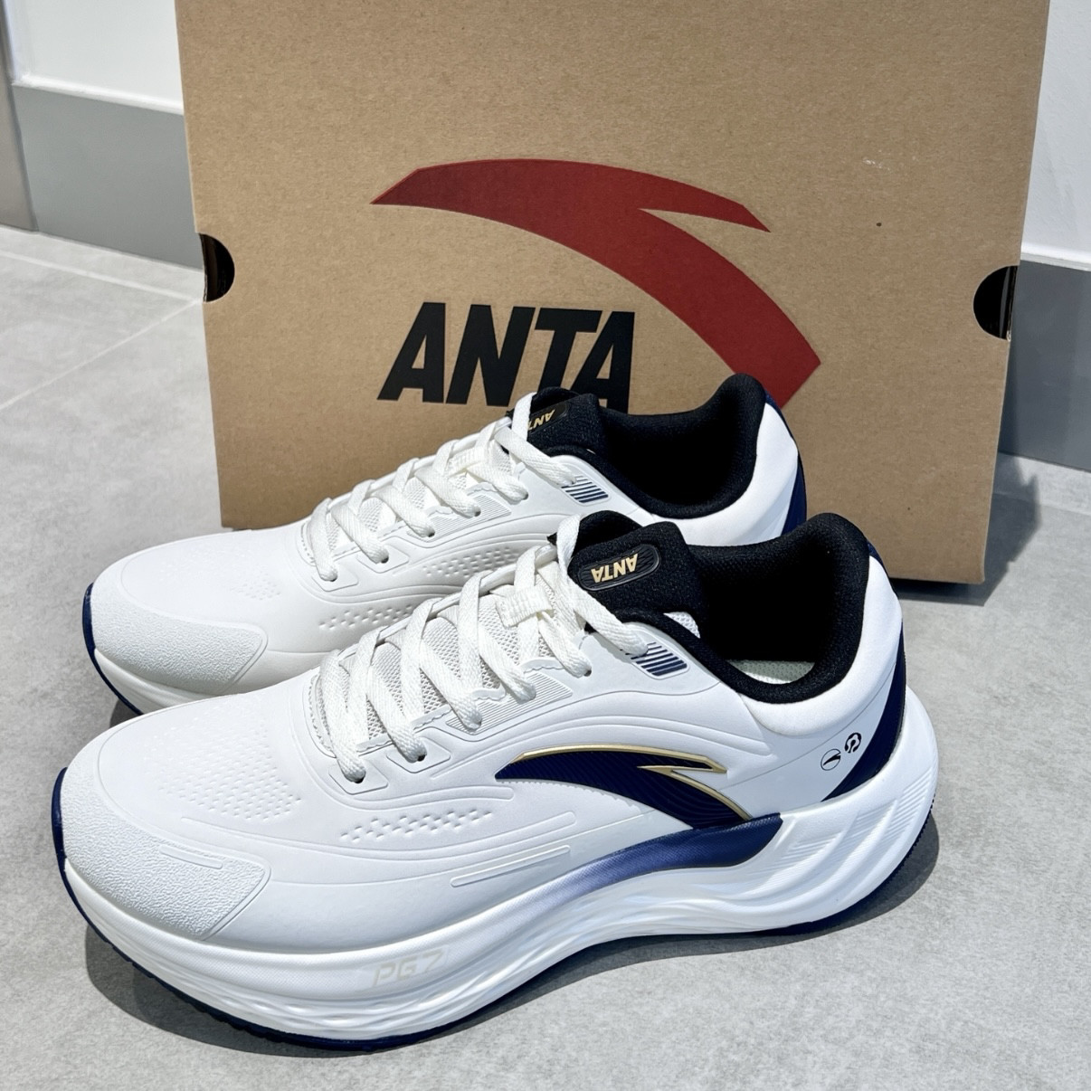 Anta安踏 PG7 缓震慢跑 透气运动 低帮跑步鞋 男款 象牙白