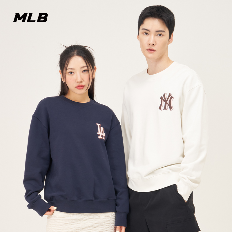 MLB官方男女情侣胶印logo老花圆领运动长袖卫衣宽松休闲春夏MTM09