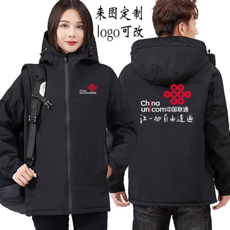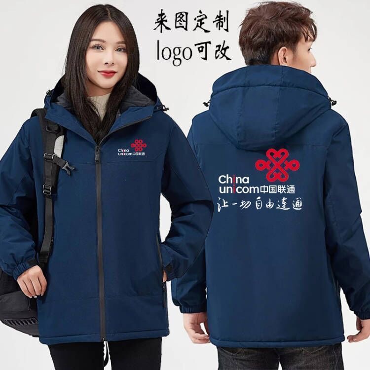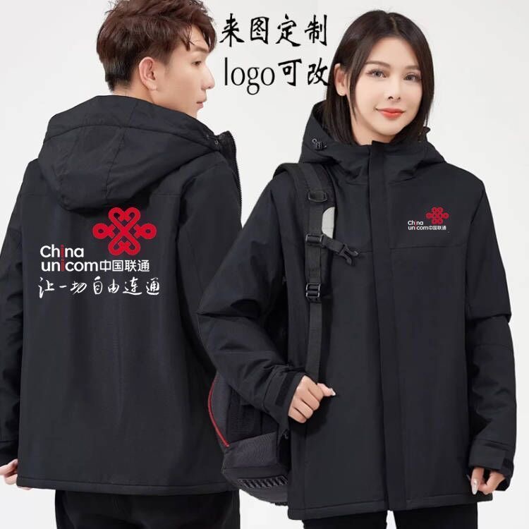 新款中国联通5G工作服定制营业厅冲锋衣加绒加厚外套印字logo秋冬