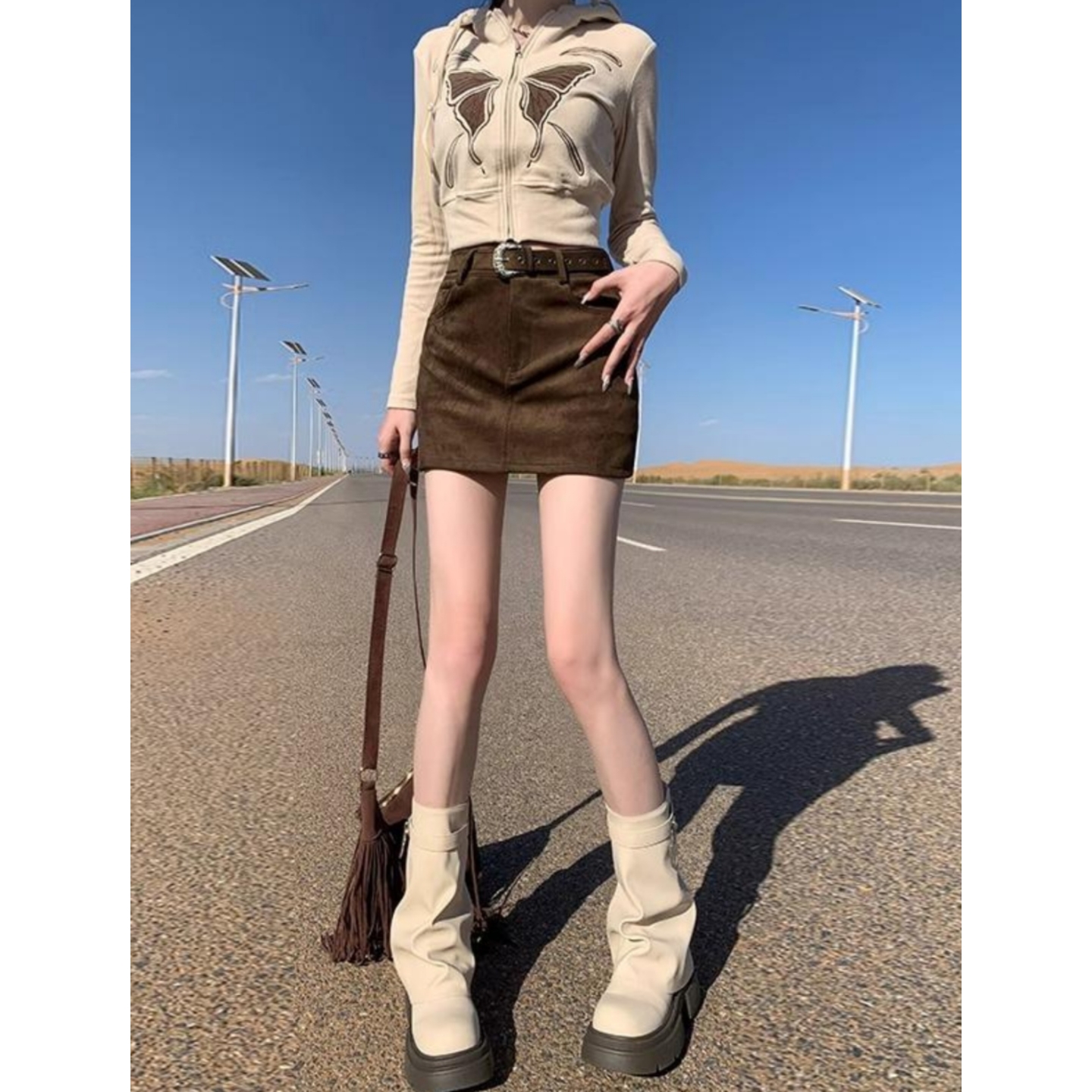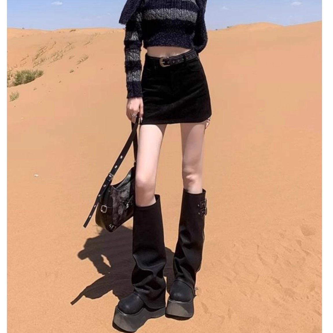 欧货辣妹麂皮绒半身裙女秋冬高腰显瘦包臂裙复古美拉德A字短裙子