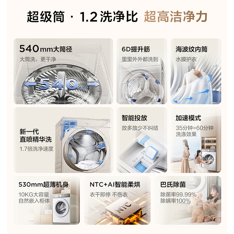 [全民补贴]TCL10公斤超级筒T7H超薄洗烘一体滚筒洗衣机全自动家用