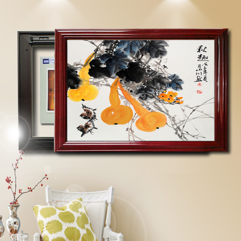 电表箱装饰画配电箱可推拉新中式实木遮挡画免打孔电闸盒客厅挂画