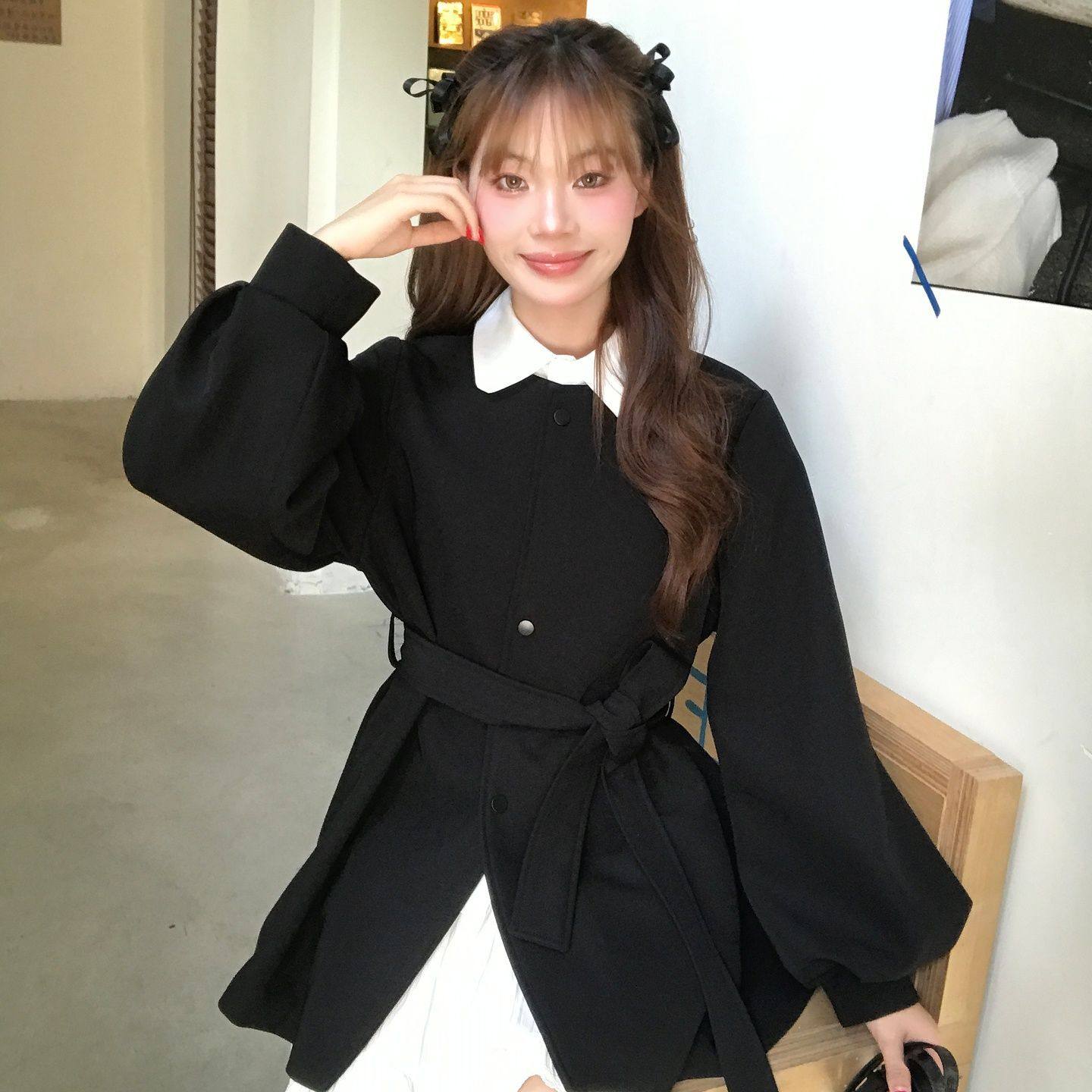 韩系系带短款风衣裙蓝色星球女装早秋流行秋冬新款小个子外套上衣