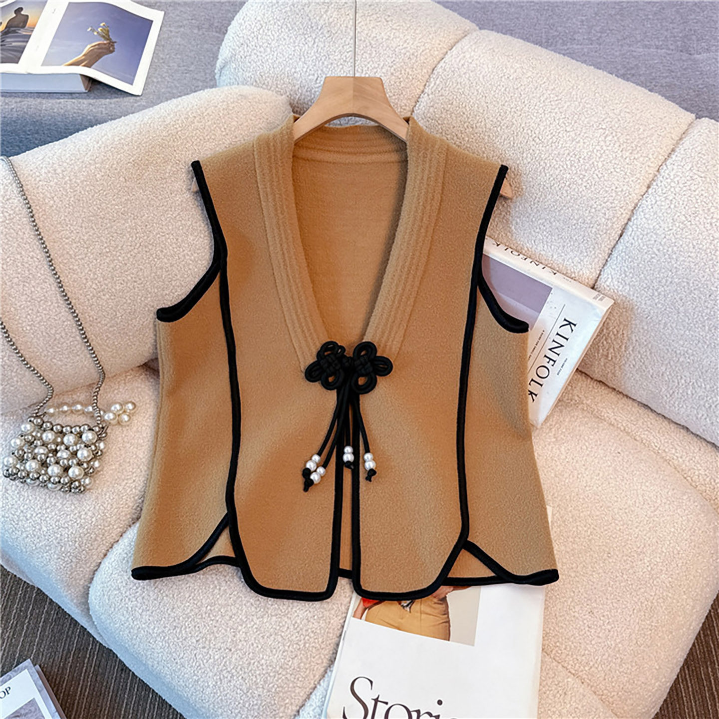 中老年妈妈新中式针织马甲三件套