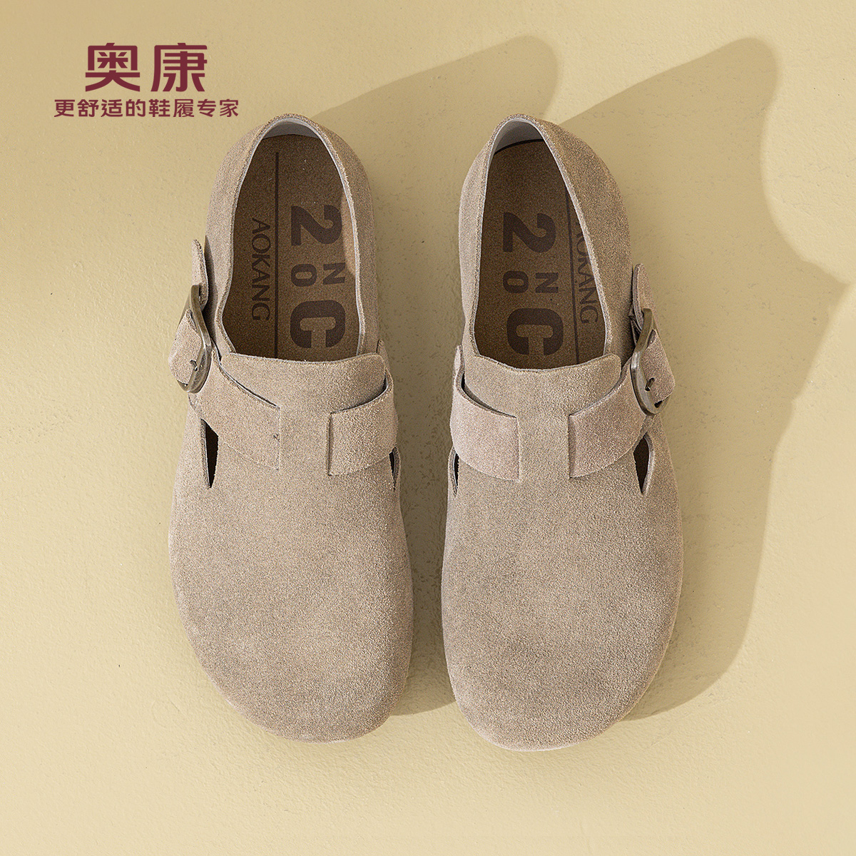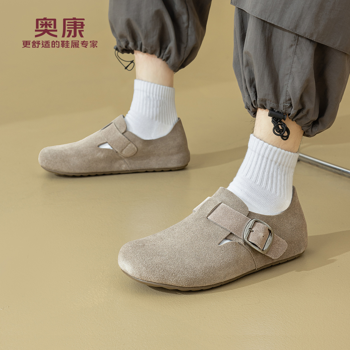 奥康 男鞋2025秋季新款复古勃肯鞋圆头全麦吐司鞋舒适休闲男单鞋N