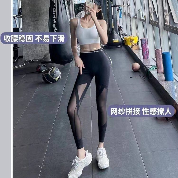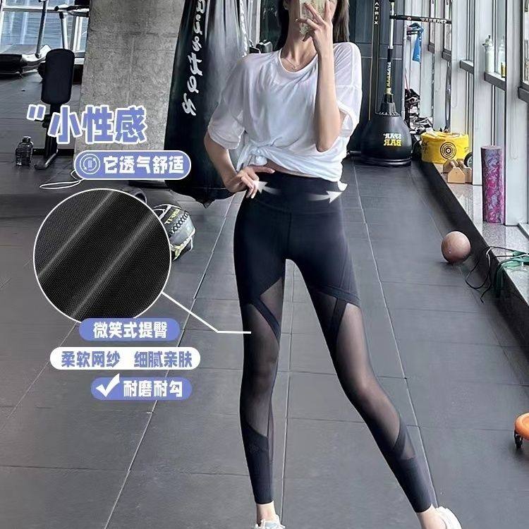 提臀运动裤女网纱瑜伽裤训练裤