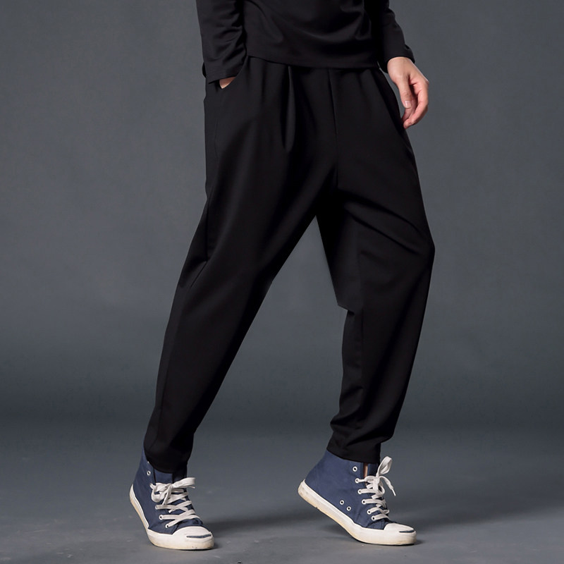 休闲松紧束脚裤潮男士新款黑色宽松小脚百搭大裆运动哈伦裤男裤子