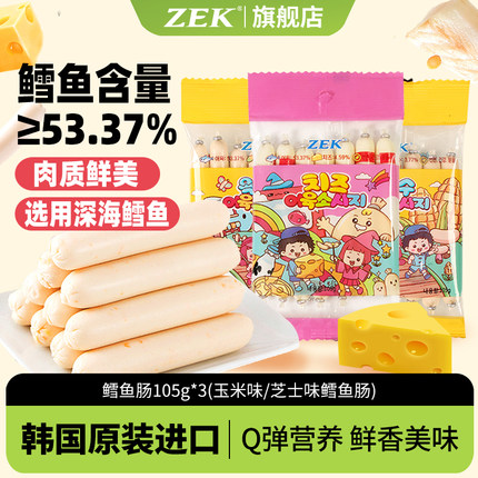 ZEK韩国进口芝士鳕鱼肠即食鱼肉肠早餐火腿肠玉米肠儿童孕妇零食