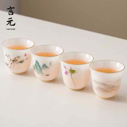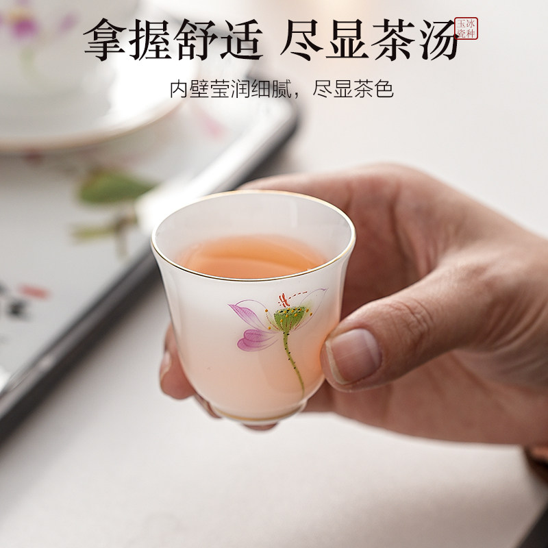 言元冰种玉白瓷茶杯主人杯品茗杯