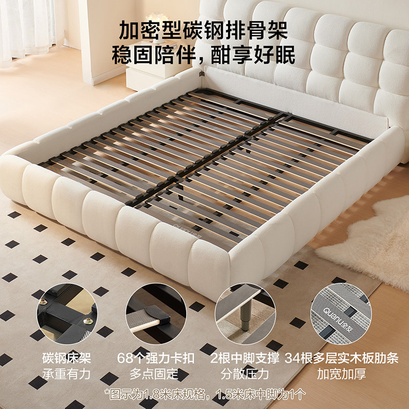 全友家居奶油风泡芙软包大床法式落地双人布艺床棉花糖床2026新款