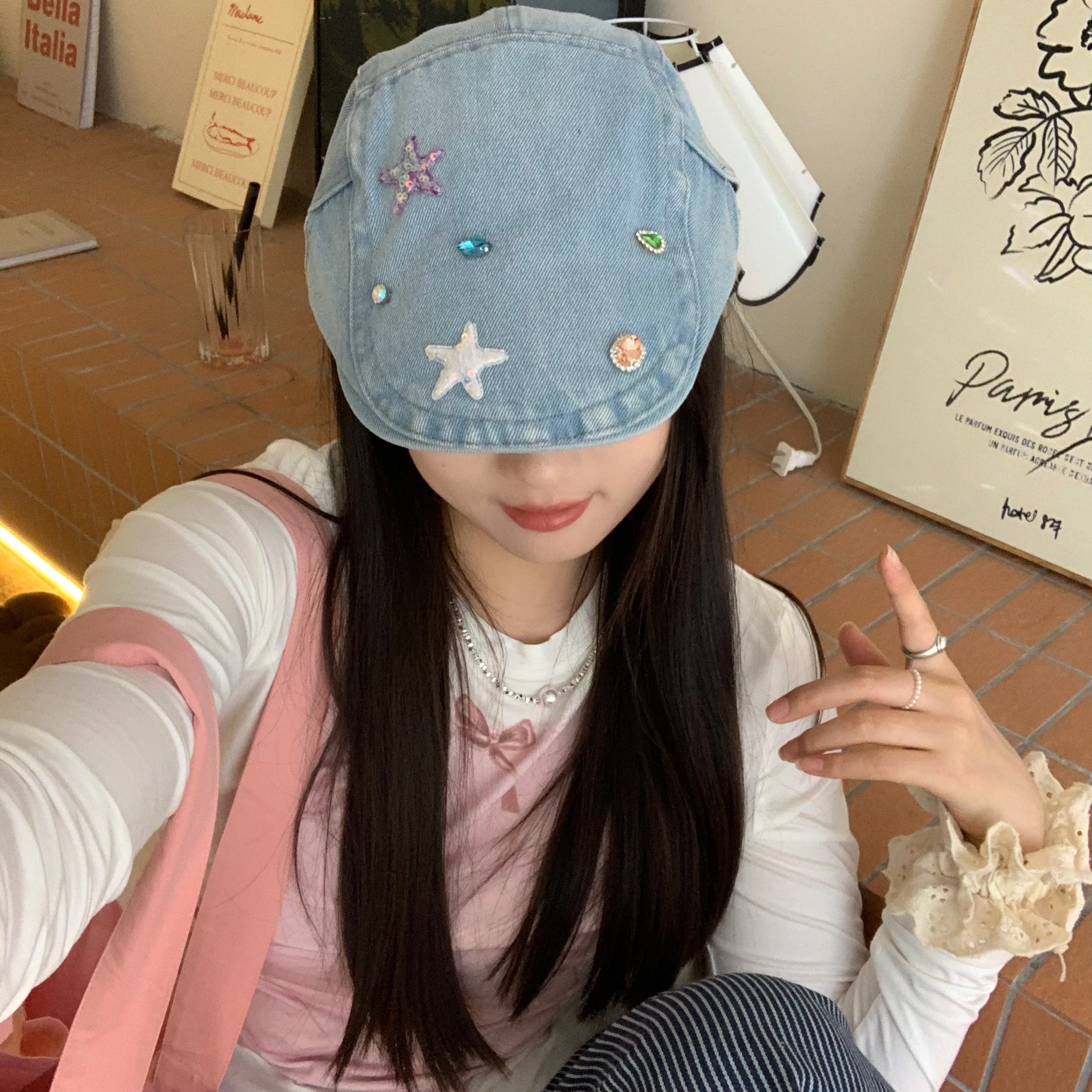 陈奶奶/帽子女星星水钻牛仔前进帽女韩系复古画家帽鸭舌贝雷帽潮