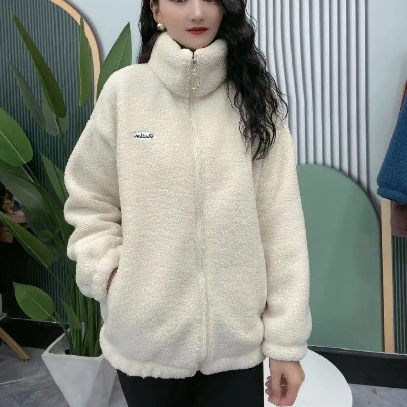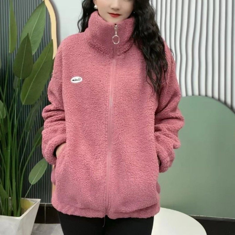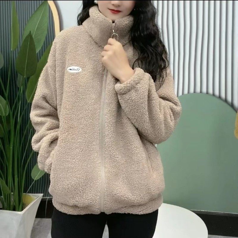 加绒一体绒外套女秋冬休闲减龄洋气加厚立领颗粒绒保暖羊羔毛棉衣