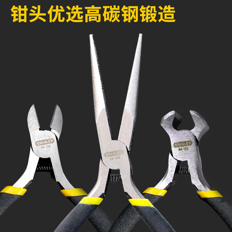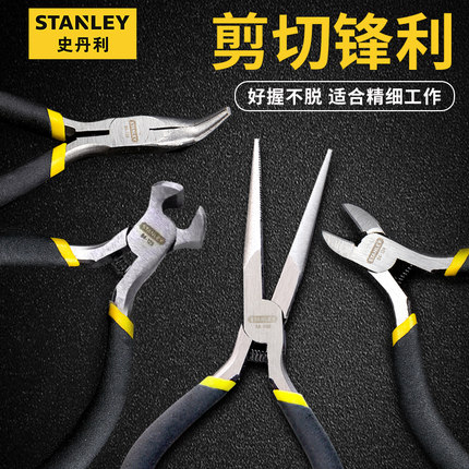 史丹利尖嘴钳小尖头迷你手工钳子DIY微型电子斜嘴钳弯嘴钳顶切钳
