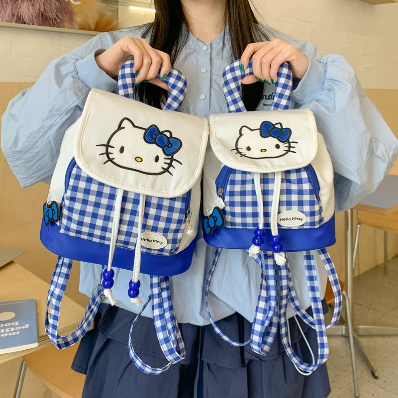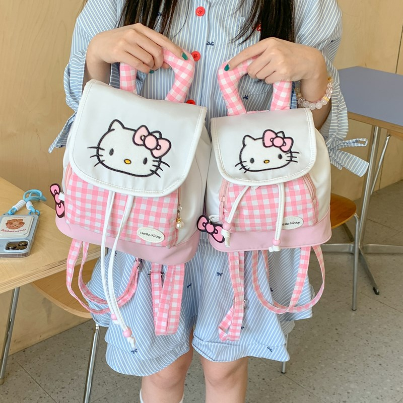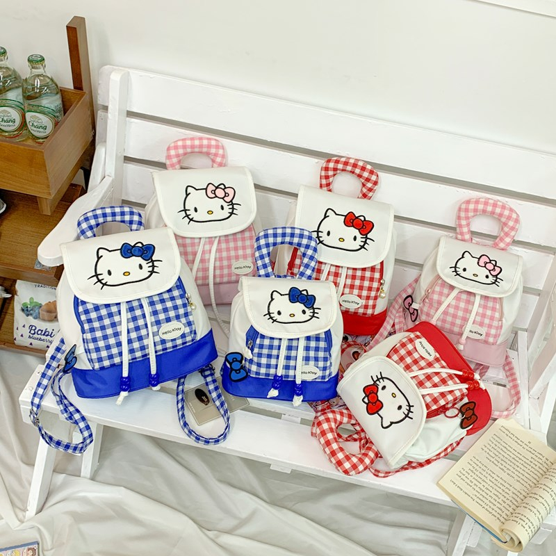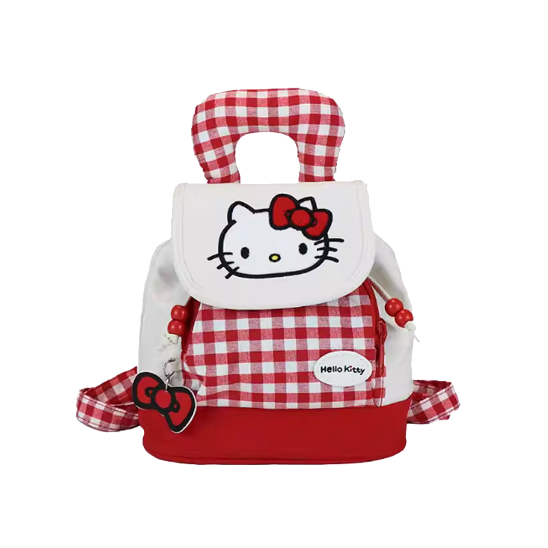 hellokitty红色格子双肩包包女2025新款卡通凯蒂猫软萌迷你小背包