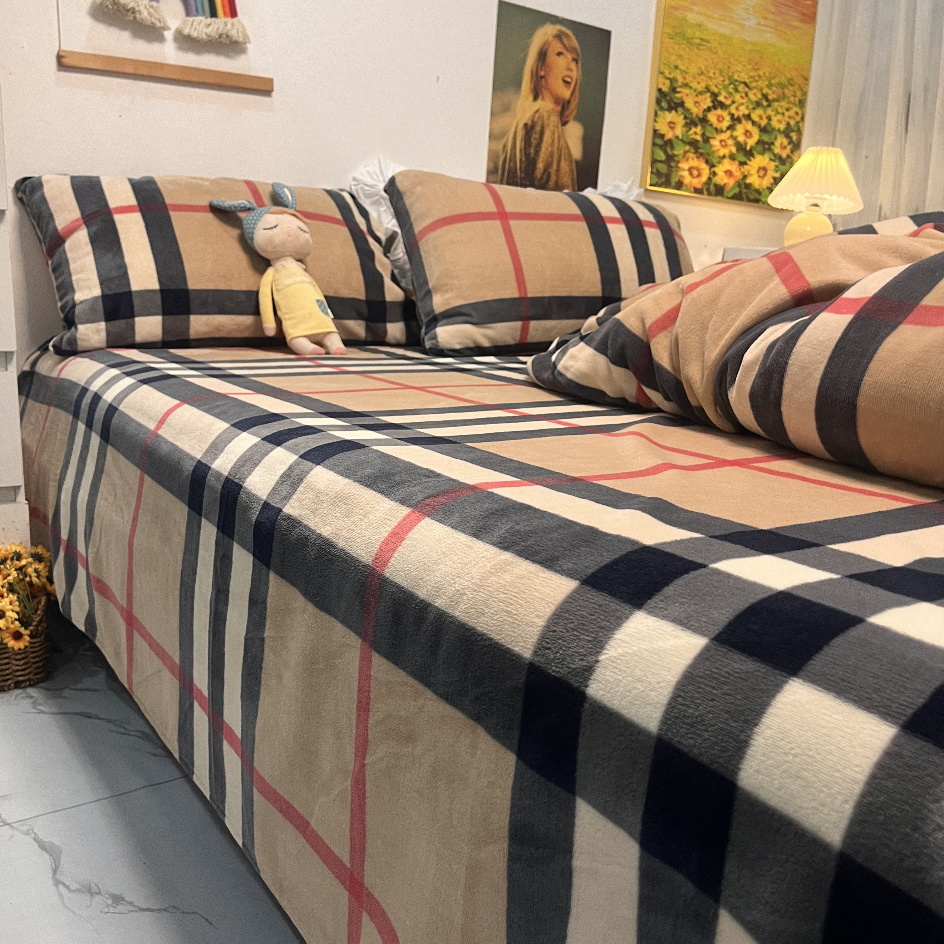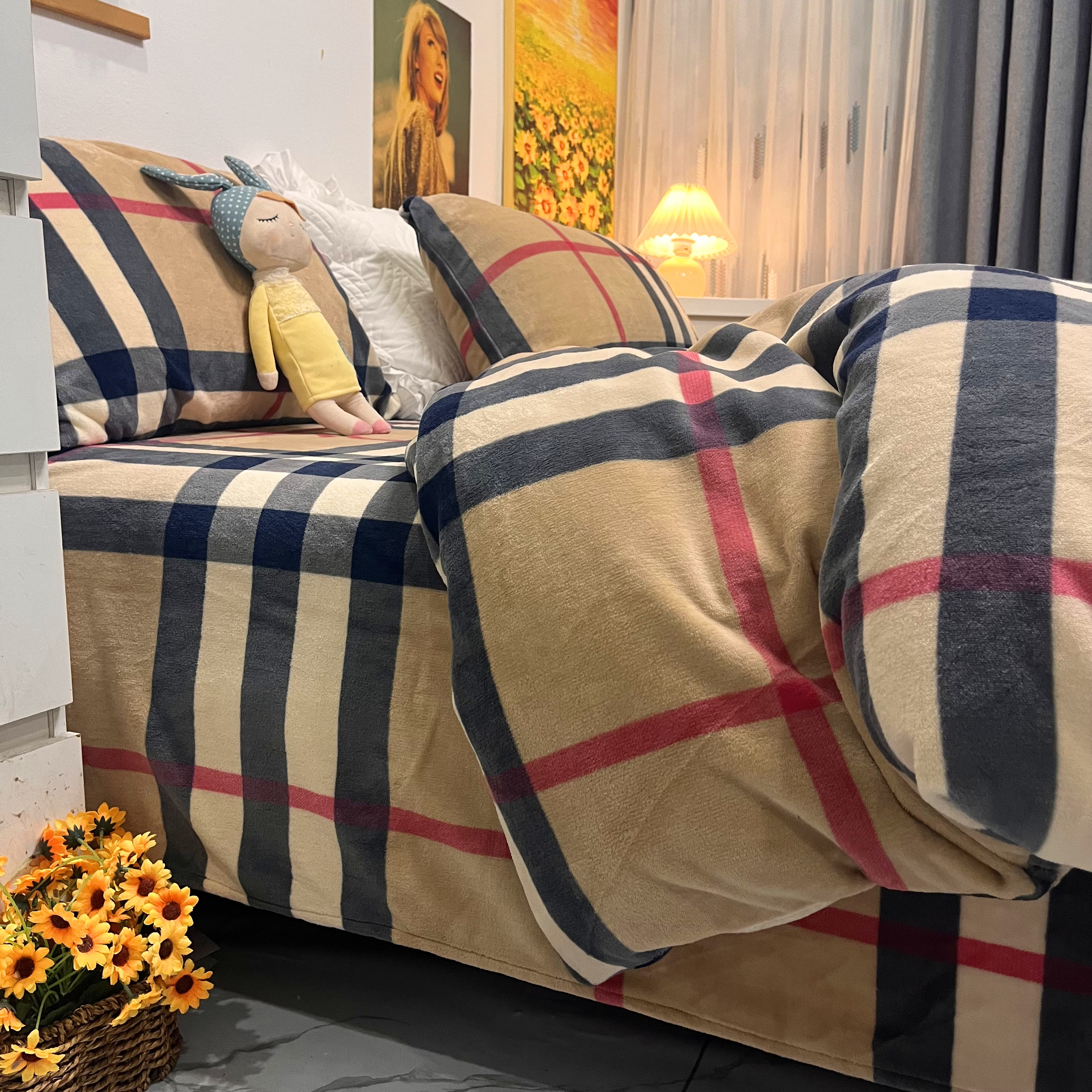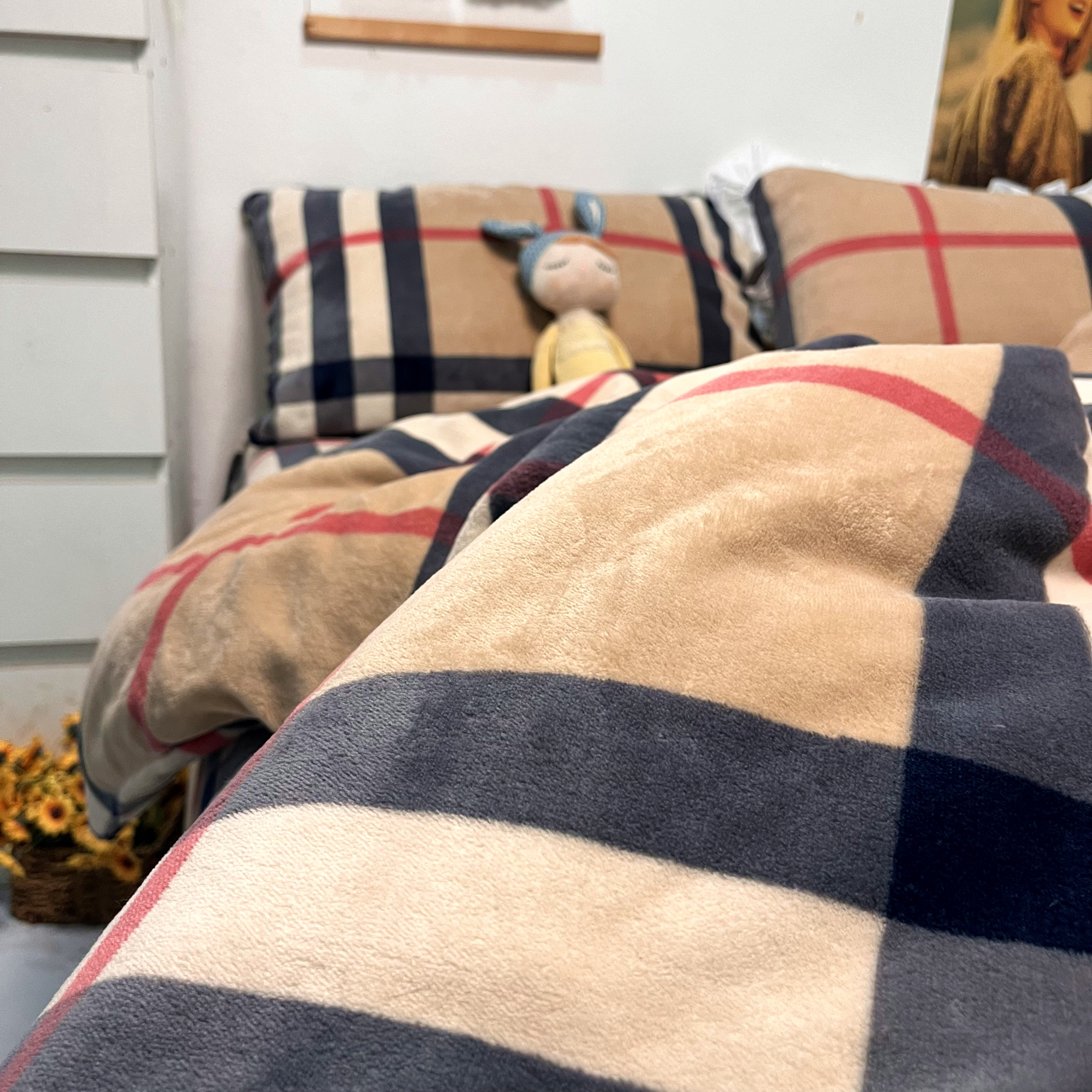 2025新款宝利格床单牛奶绒四件套冬季加厚珊瑚绒防静电床笠款无印