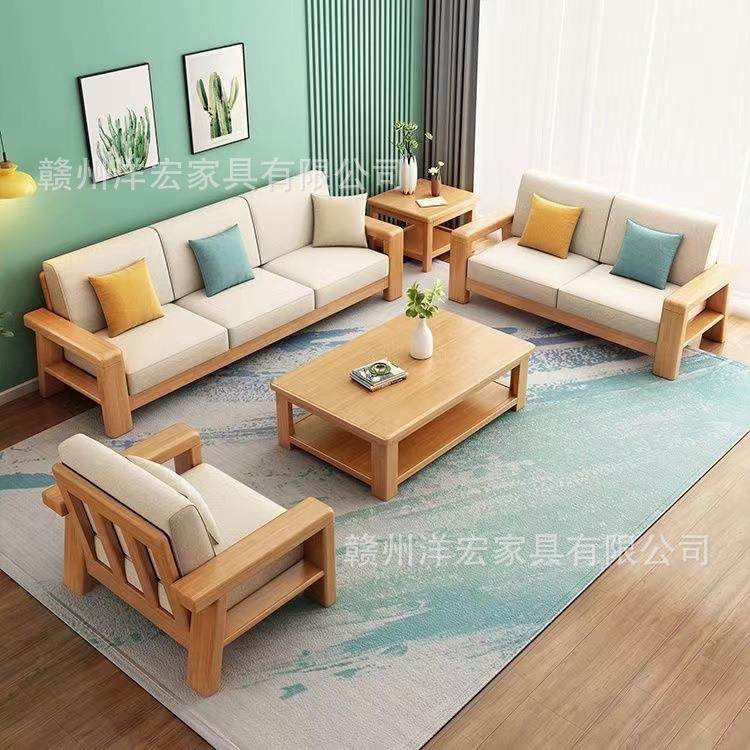 北欧实木沙发组合可拆洗转角小户型布艺沙发简约现代客厅原木沙发