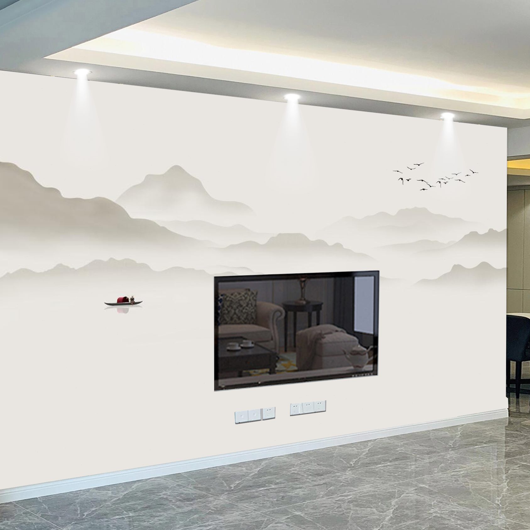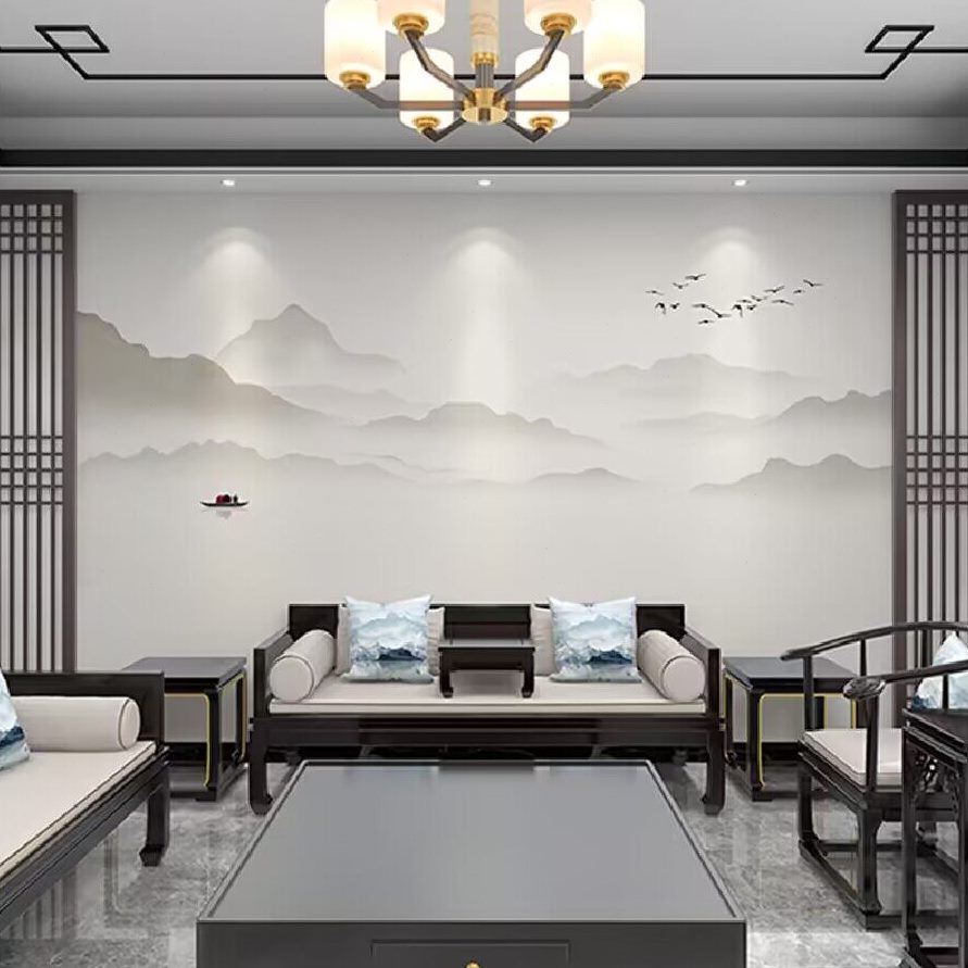 水墨墙纸大气沙发影视壁纸壁布壁画电视背景墙山水新中式墙布客厅
