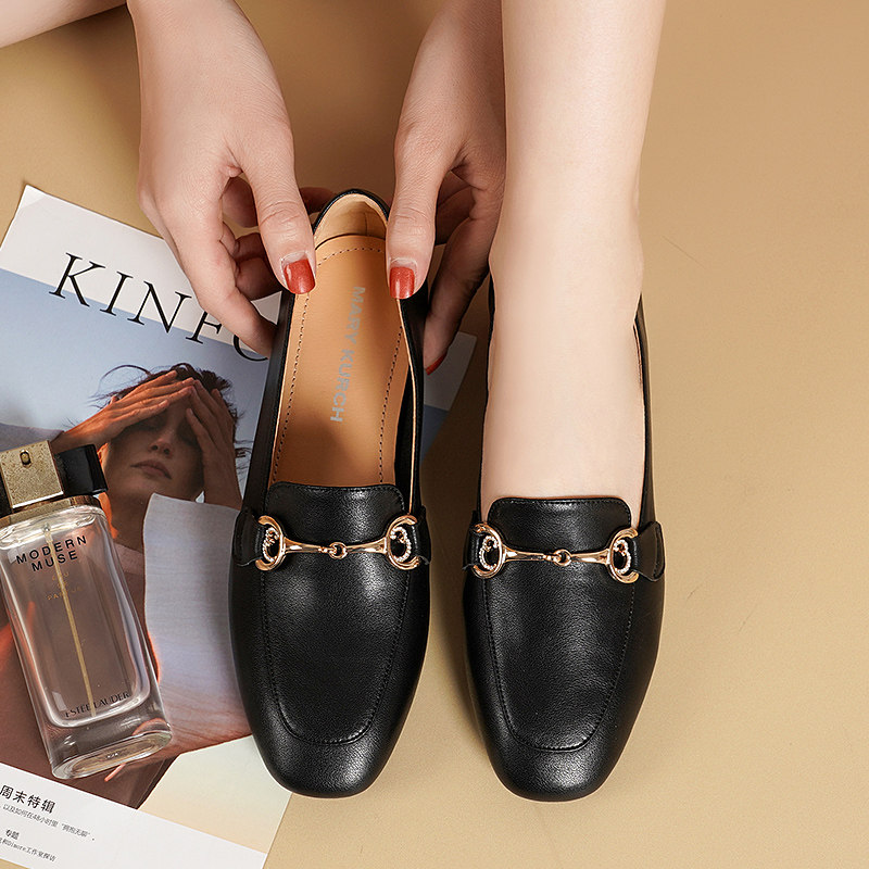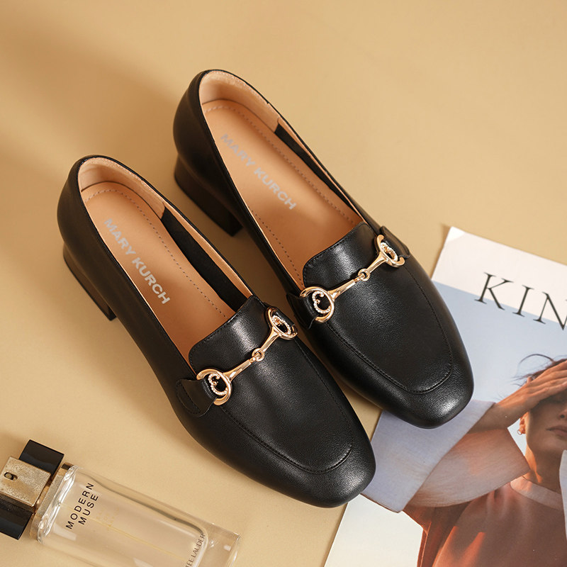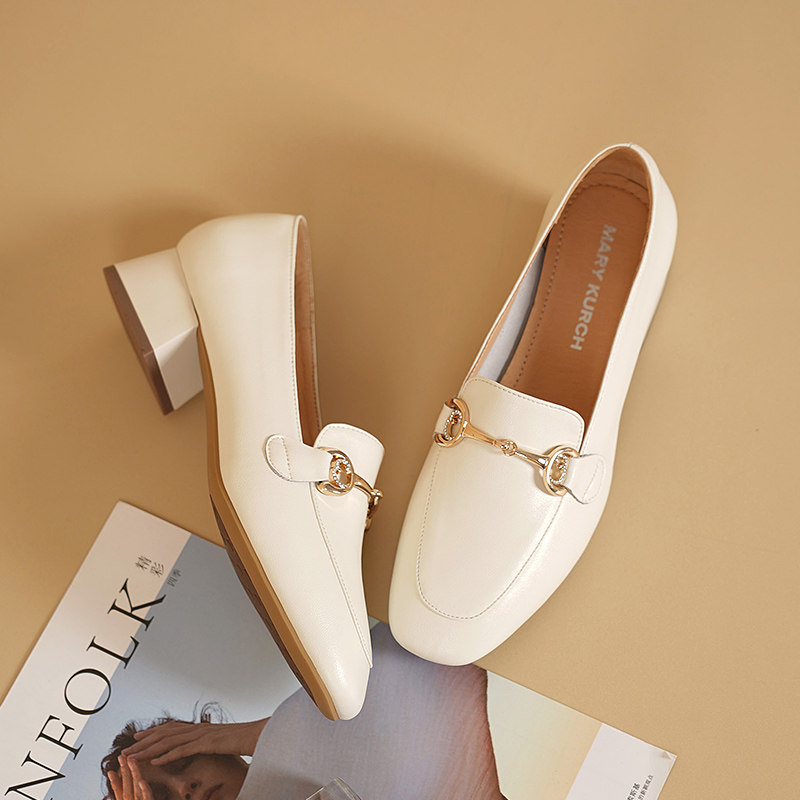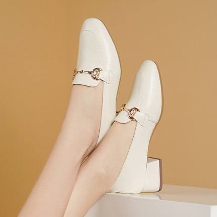 【专柜品质】真皮马衔扣乐福鞋女2025春季法式单鞋中跟粗跟小皮鞋