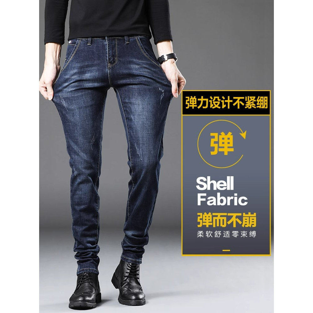 Yishion以纯官方时尚正品牛仔裤男修身男裤2025年秋冬加绒男士小