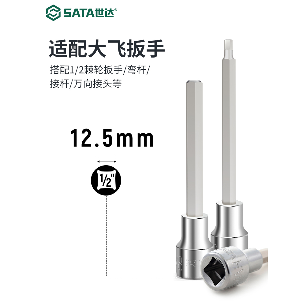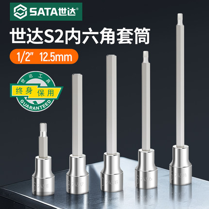 世达工具大飞内六角套筒批头12.5mm扳手1/2加长内六方旋具套筒头