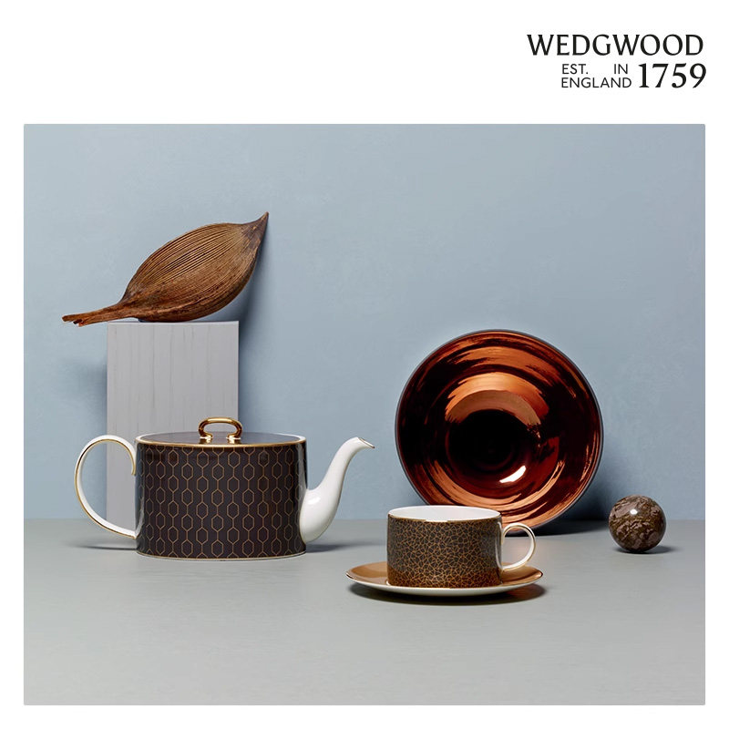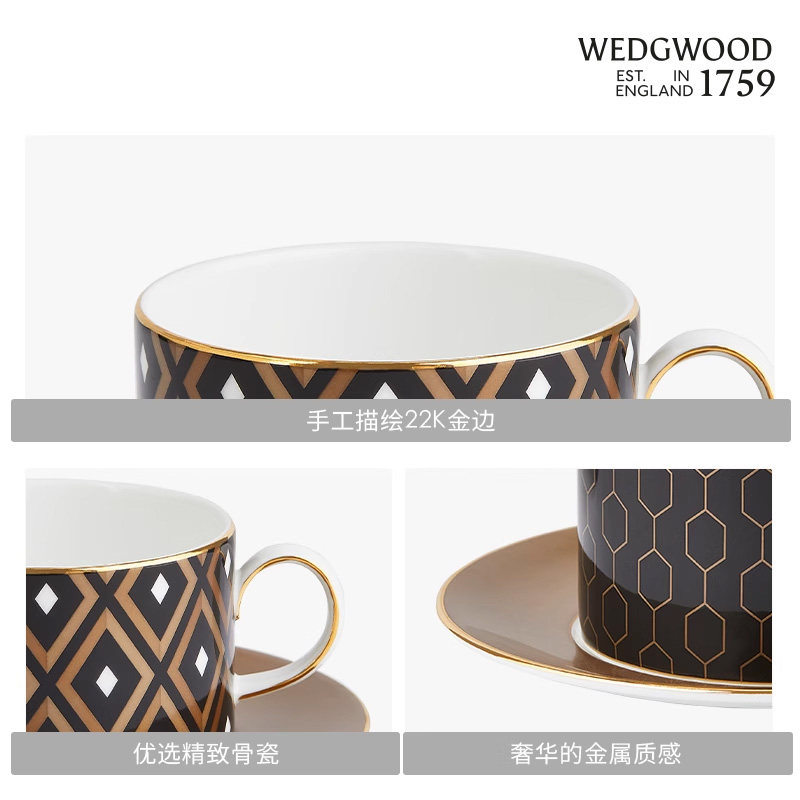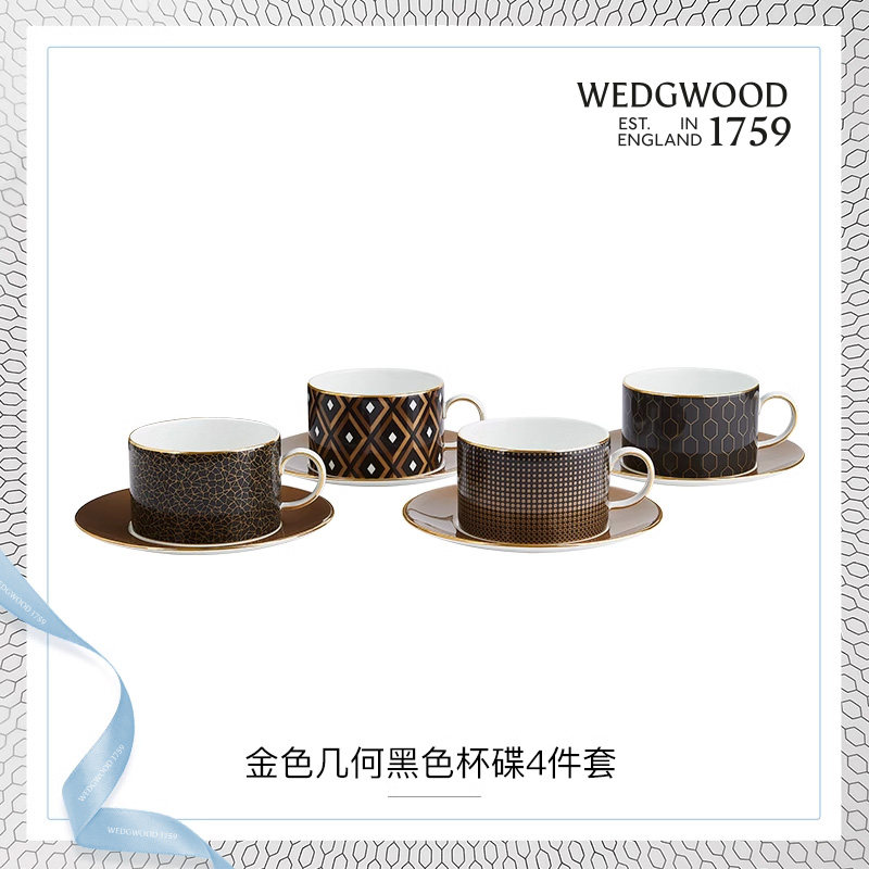 WEDGWOOD威基伍德金色几何黑色杯碟四件套礼盒乔迁礼物
