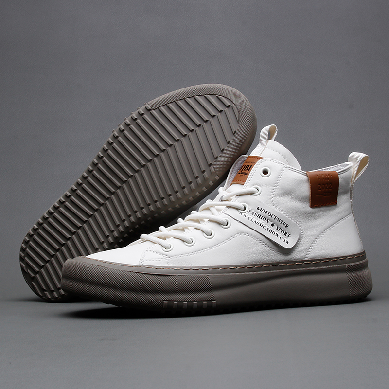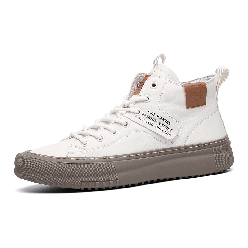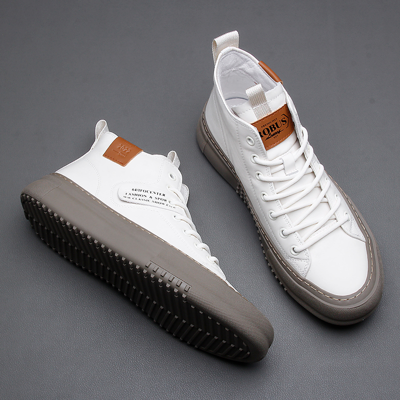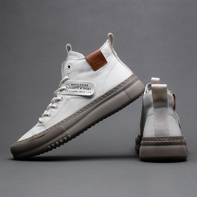 男鞋秋冬季新款高帮皮鞋头层牛皮百搭中帮小白鞋厚底时尚中筒短靴