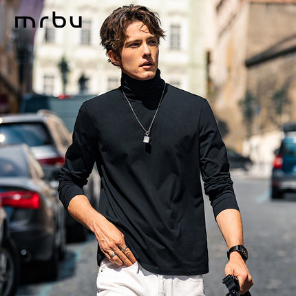MrBu布先生长绒棉长袖t恤男款双翻领高领打底衫秋冬内搭KT15760