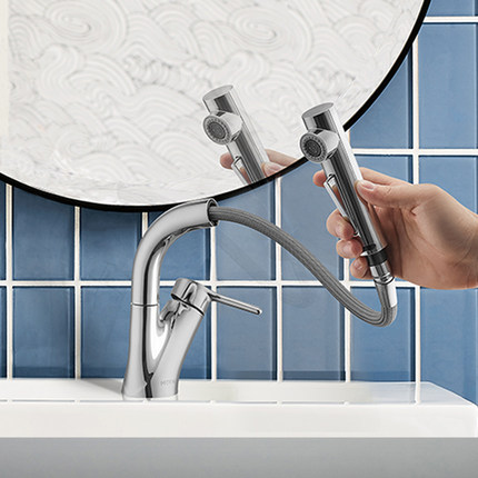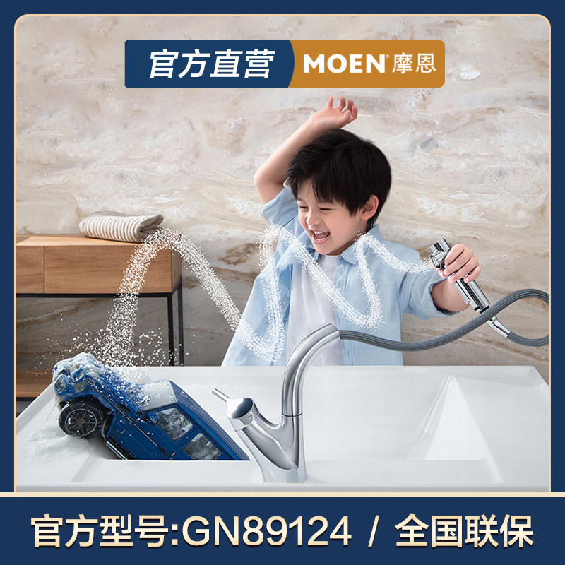 摩恩水龙头冷热抽拉式洗手盆升降洗脸盆台上万向家用卫生间89124