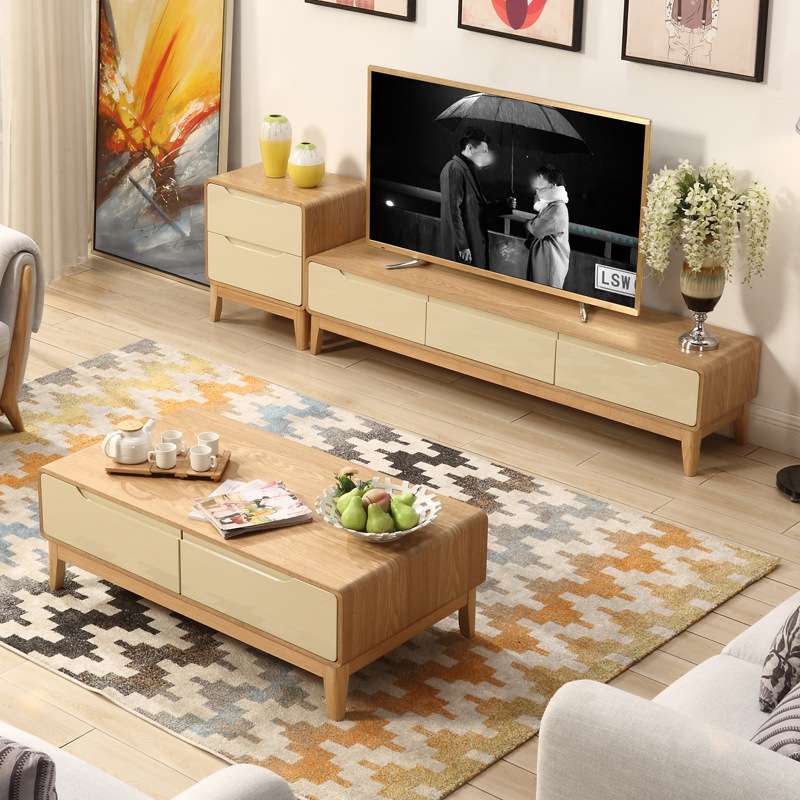 北欧小户型茶几电视柜组合套装简约实木客厅小茶桌日式茶几现代