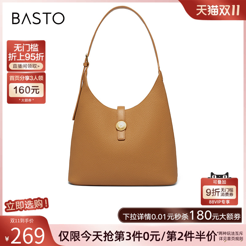 百思图春秋商场同款气质纯色大容量托特包单肩斜挎包女X3240AX4