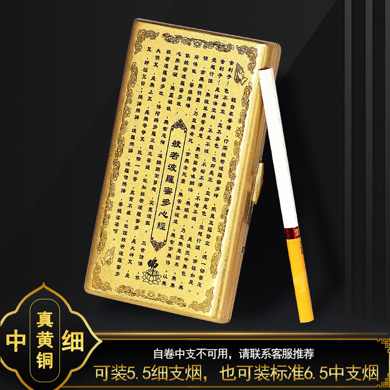 酷宝新款心经黄铜5.5细支专用烟盒20装便携超薄男6.5中支空烟夹盒