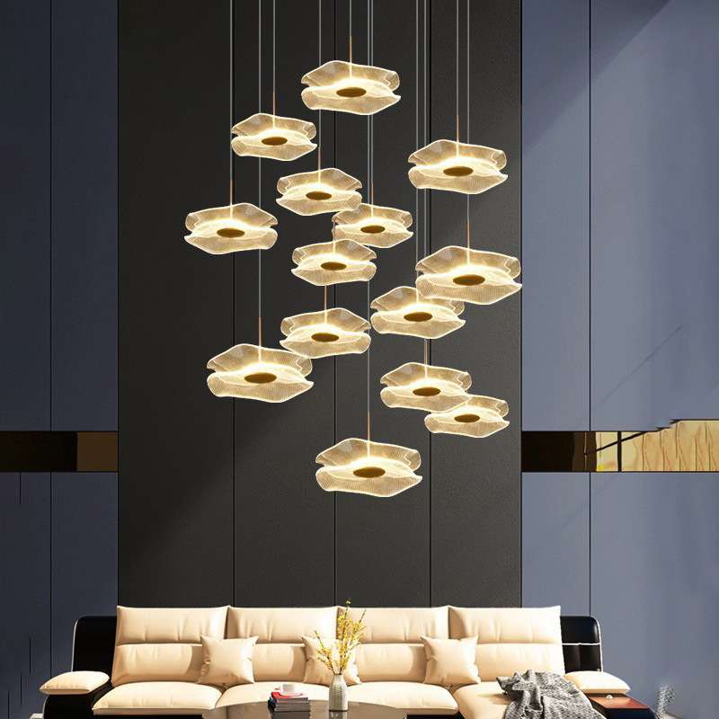 旋转loft吊灯空楼梯灯饰客厅现代创意挑别墅大简约复式楼荷叶吊灯