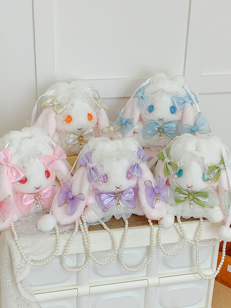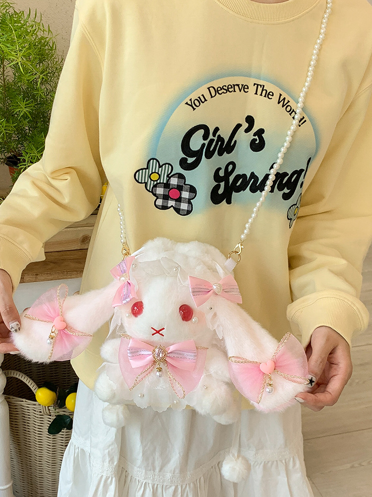 洛丽塔垂耳兔子毛绒斜挎包少女可爱儿童包软妹珍珠链卡通单肩背包