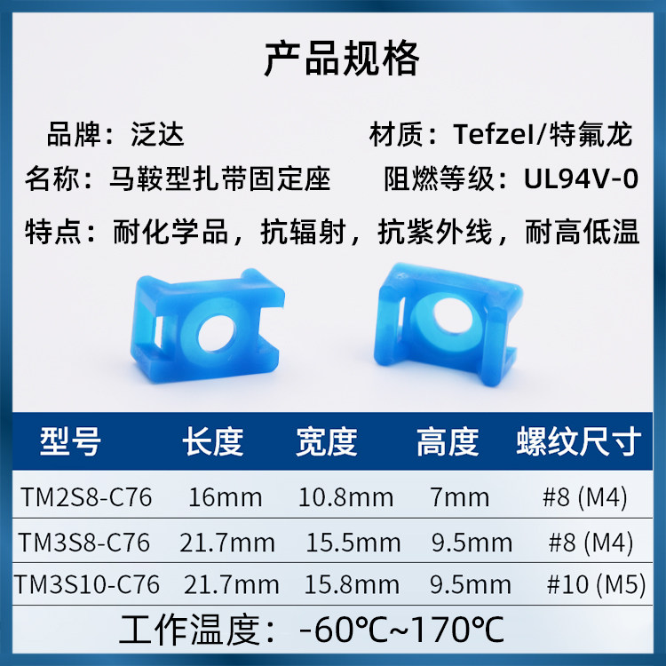 美国泛达原装进口特氟龙扎线带固定座耐高低温马鞍型螺丝孔固定座