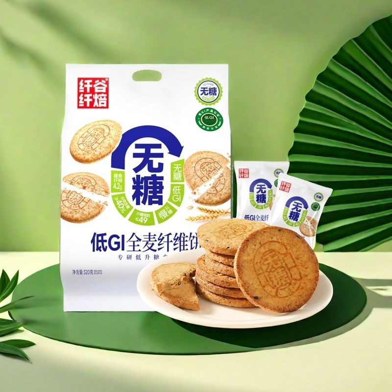 纤谷纤焙无糖低GI全麦纤维饼干三重蛋白饼金苓饼酥脆粗粮代餐食品