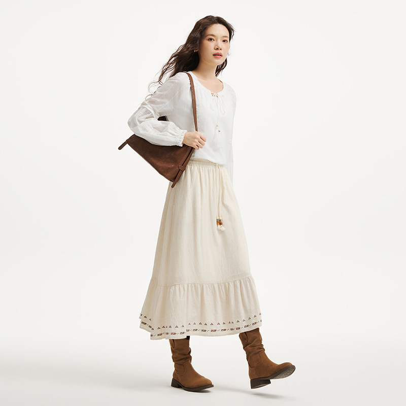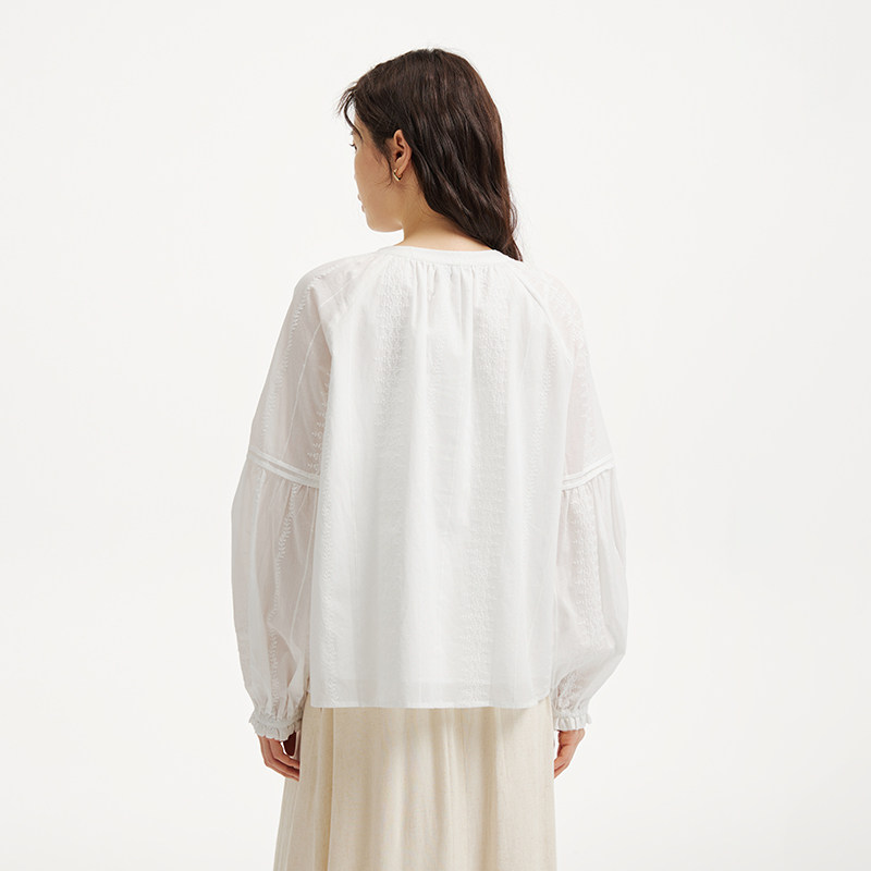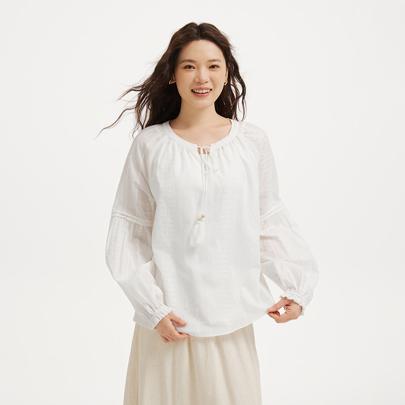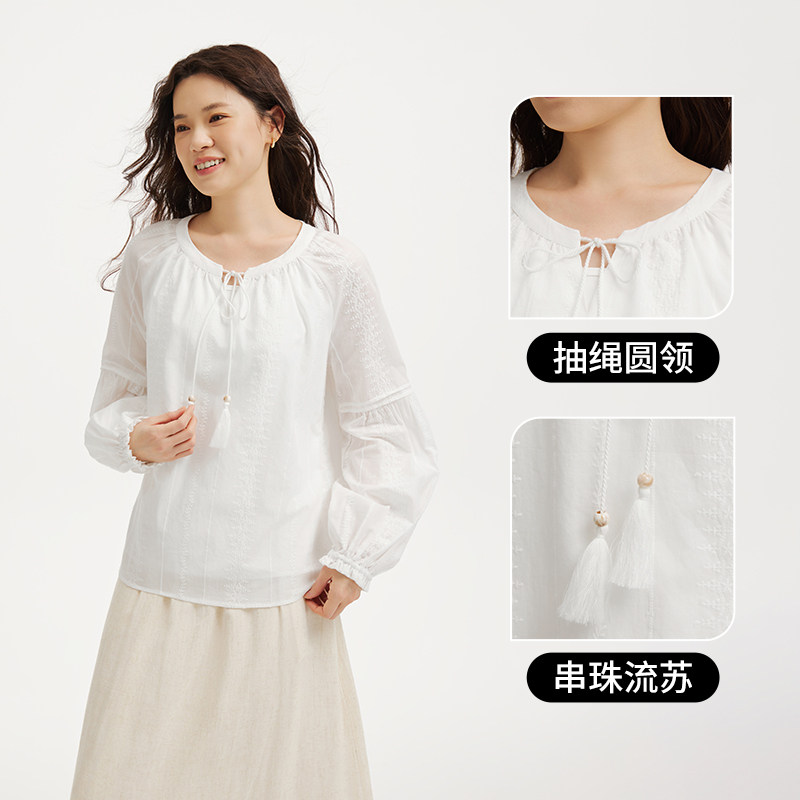 热风女士长袖衬衫上衣2026年春季新款波西米亚衬衫度假风穿搭上衣