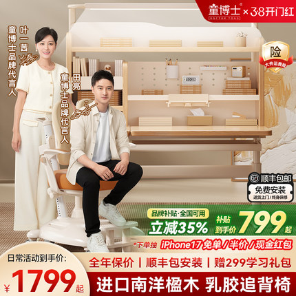 童博士儿童学习桌家用升降实木书桌小学生写字专用课桌子椅子套装