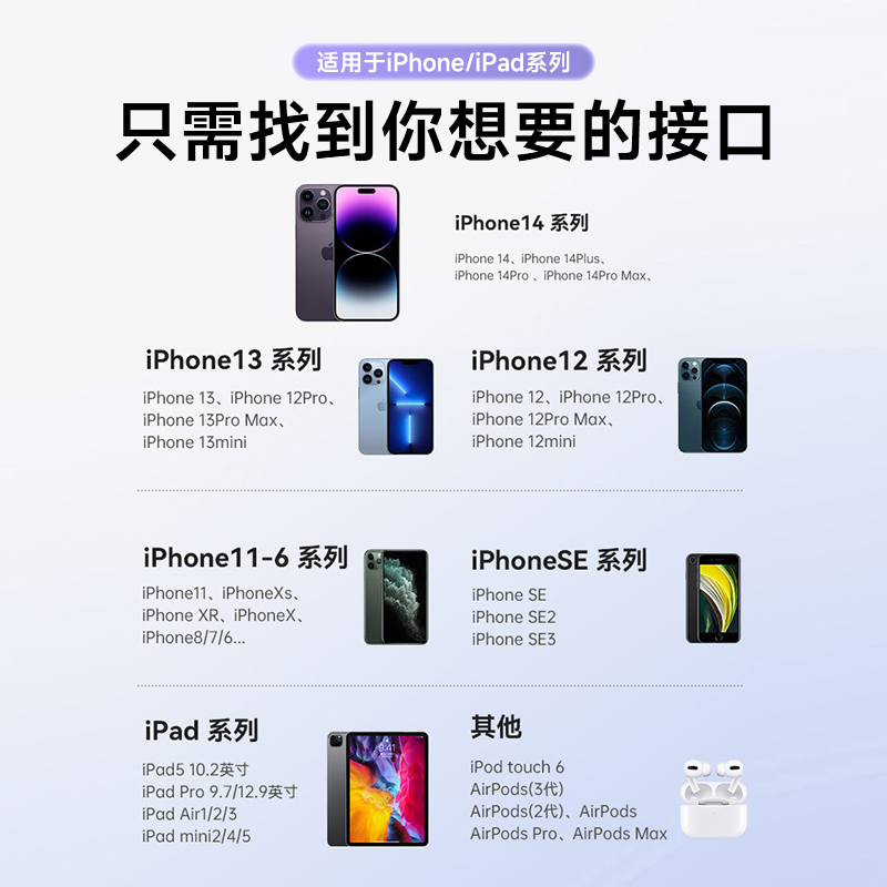罗马仕快充数据线USB充电器线pd闪充线加长1.5m便携短线适用于iPhone 12/13promax苹果14手机平板ipad通用