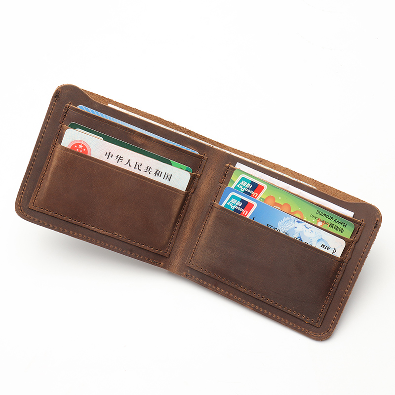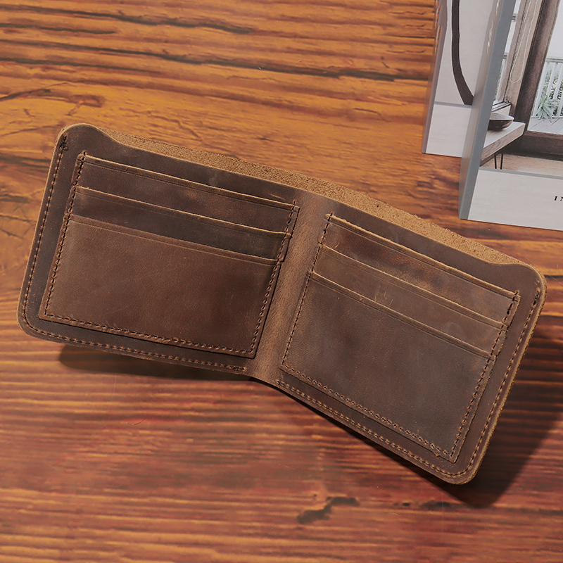 复古粗犷手工头层牛皮疯马皮钱包短款横竖款男士真皮钱夹简约钱夹