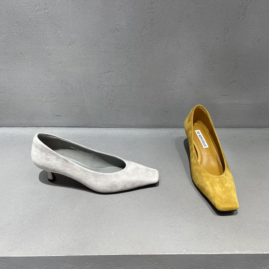 欧洲站女鞋2025秋季新款欧货真皮羊猄方头浅口仙女风细跟高跟鞋女