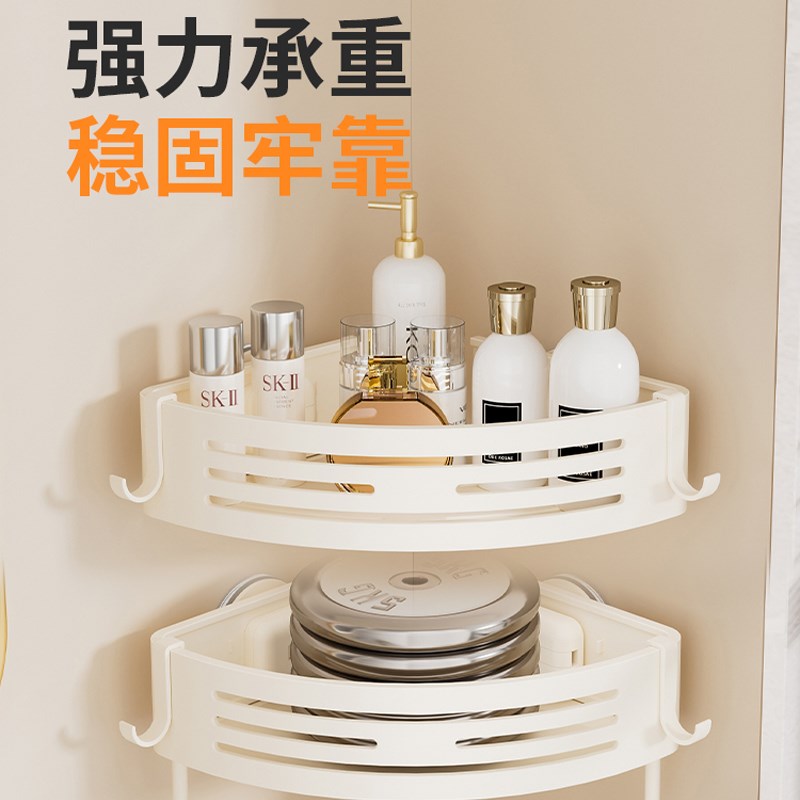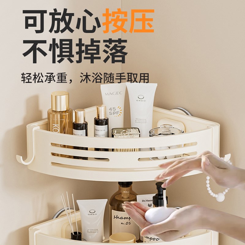 奶油白吸盘卫生间三角置物架免打孔厕所洗漱台转角壁挂式浴室收纳