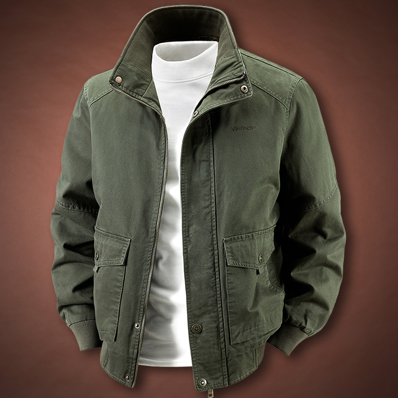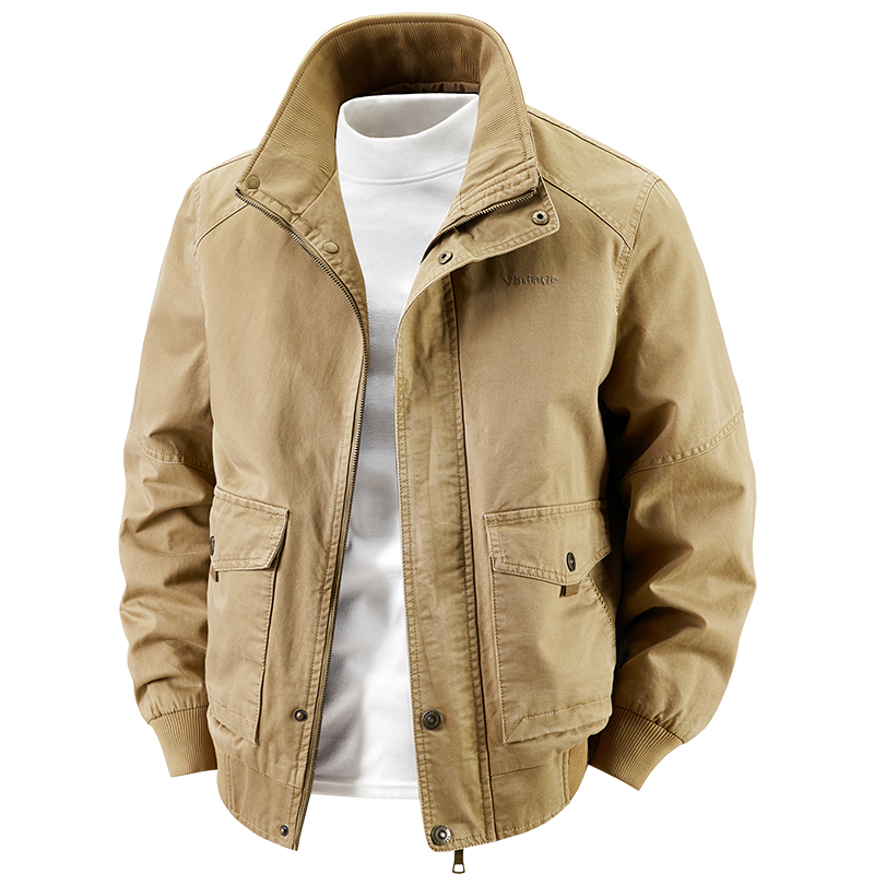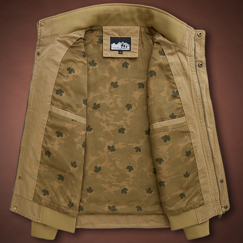 纯棉工装外套男春秋季多袋中年宽松大码美式休闲立领夹克爸爸装