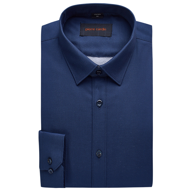【纯棉加绒】皮尔卡丹长袖衬衫23秋冬休闲保暖加厚深蓝提花男衬衣