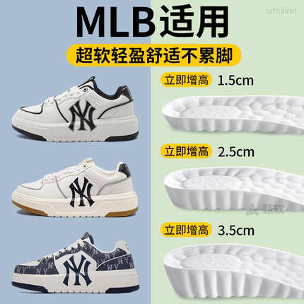 适用MLB增高鞋垫女舒适不累脚踩屎感隐形内增高男吸汗防臭增高垫
