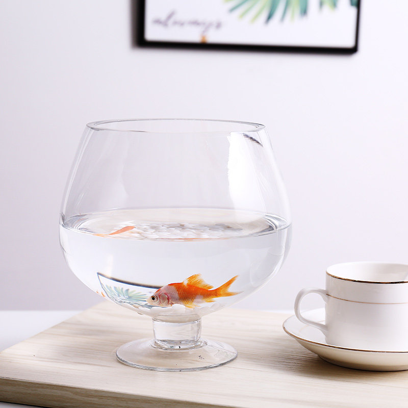 创意小型客厅鱼缸玻璃圆形加厚乌龟缸金鱼缸桌面特大号啤酒英雄杯