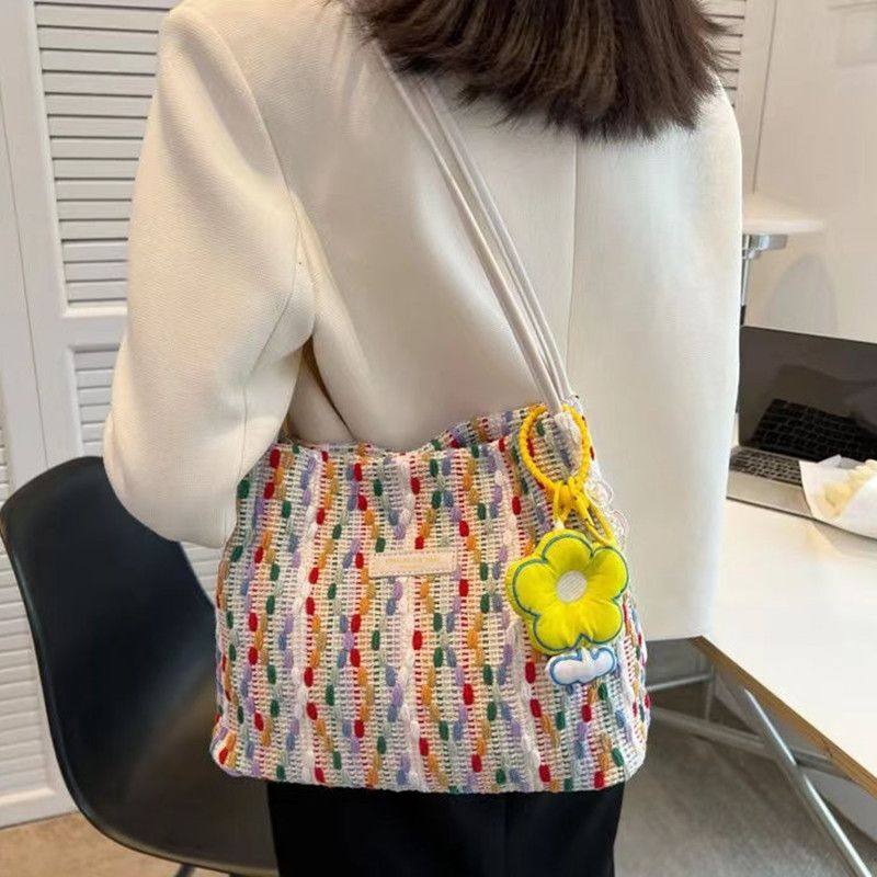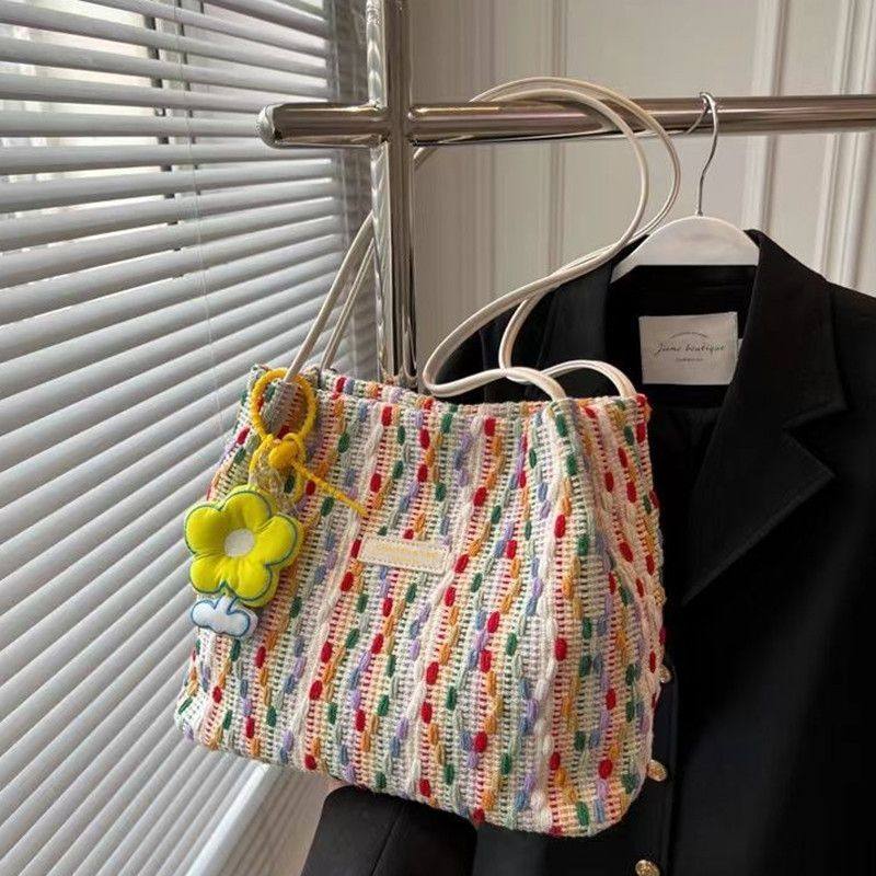 爆款韩系包包大容量女包编织帆布包高级质感时尚单肩包百搭托特包