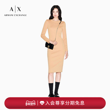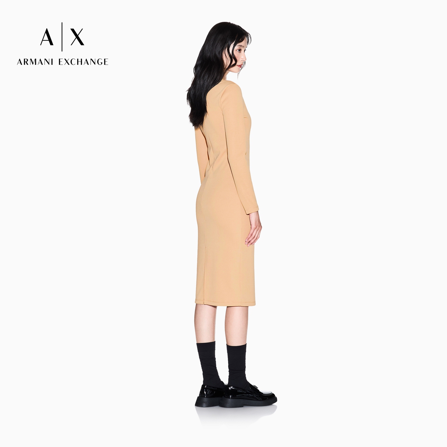 ARMANI EXCHANGE/阿玛尼春季新款女士圆领长款优雅针织连衣裙官方