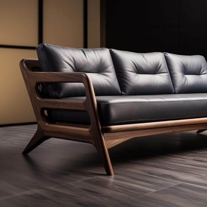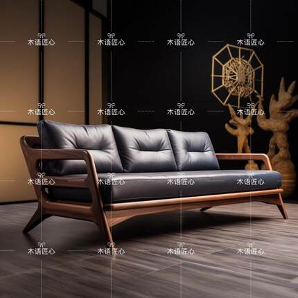 新中式沙发罗汉床北美黑胡桃木客厅实木沙发床简约乌金木现代皮艺