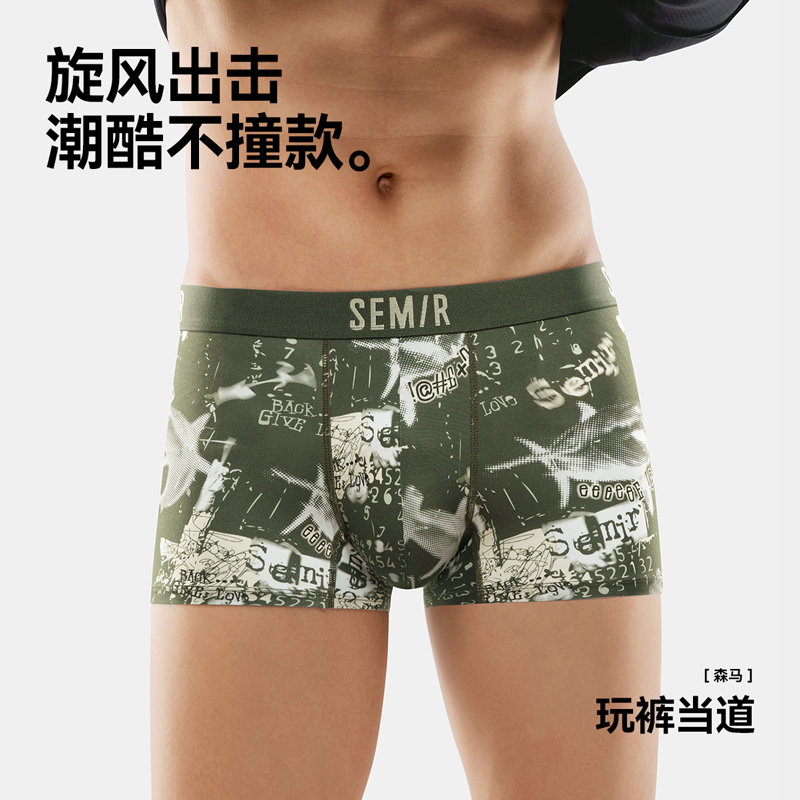 森马男士内裤纯棉100%全棉裆抗菌印花男生平角短裤裤衩底裤四角裤