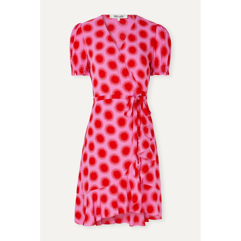 【折扣】DVF 女荷叶边印花绉纱V领连衣裙
